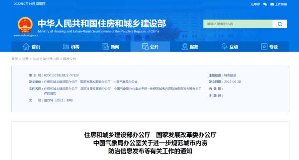 近日住房和城鄉(xiāng)建設(shè)部、國(guó)家發(fā)展改革委、中國(guó)氣象局發(fā)布關(guān)于進(jìn)一步規(guī)范城市內(nèi)澇防治信息發(fā)布等有關(guān)工作的通知。