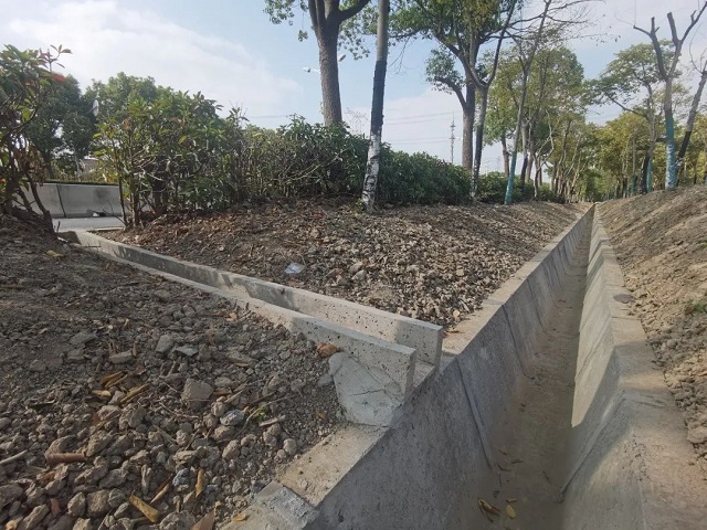 在趙重公路新豐支路至滬常高速段,由于道路兩側(cè)地塊標(biāo)高較高,排水溝淤堵、填埋導(dǎo)致雨天經(jīng)常出現(xiàn)內(nèi)澇情況。針對該路段積水原因,改造工程重點解決路面積水匯流及排水出路問題,在非機動車道外側(cè)新建流水槽,將非機動車道外側(cè)積水引流至道路外側(cè),翻挖新建邊溝、雨水連通管和雨水口,實現(xiàn)及時排水?!爸暗缆吩O(shè)計是自排水的,依靠道路兩側(cè)的土溝收集雨水,隨著這幾年道路周邊地塊開發(fā),土溝已經(jīng)不滿足排水要求,所以按照五年一遇的暴雨降水量,在道路兩側(cè)增設(shè)混凝土明溝收集道路雨水,現(xiàn)在施工已經(jīng)完成,觀察下來,道路沒有發(fā)生過積水問題。”青浦區(qū)道路運輸管理事務(wù)中心工作人員徐華介紹。