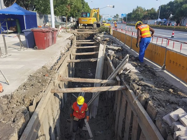 在外青松公路千新公路至油墩港路段,積水點改造項目進入到排水管道鋪設(shè)和雨水井施工的收尾工作。據(jù)該項目負(fù)責(zé)人介紹,以往每逢暴雨期間,外青松公路、千新公路交叉口積水嚴(yán)重,對周邊人員正常出行造成很大的影響。為徹底解決積水問題,在外青松公路道路新建雙排管口直徑為1000毫米雨水管道,自千新公路西側(cè)起排,收集道路路面及兩側(cè)地塊雨水后排入油墩港,減輕片區(qū)的排水壓力,解決困擾周邊居民已久的內(nèi)澇問題?!爸暗呐潘到y(tǒng)年代久,管道積淤情況嚴(yán)重,而且這邊道路地勢比較低,非常容易積水。這次改造施工主要以大口徑的管道的排設(shè)為主,在非機動車道上增設(shè)進水井,在雨量大的時候可以及時水排走,達(dá)到解決積水問題的效果?!狈e水點改造項目經(jīng)理張源說。