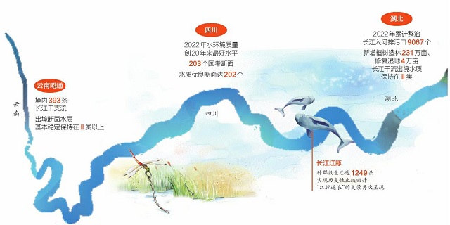 “2022年,湖北省繼續(xù)把修復(fù)長(zhǎng)江生態(tài)環(huán)境擺在壓倒性位置,協(xié)同推進(jìn)降碳、減污、擴(kuò)綠、增長(zhǎng)。長(zhǎng)江保護(hù)修復(fù)提檔升級(jí)。”亢德芝列出數(shù)據(jù),深入實(shí)施長(zhǎng)江高水平保護(hù)十大攻堅(jiān)提升行動(dòng),累計(jì)整治長(zhǎng)江入河排污口9067個(gè),新增植樹(shù)造林231萬(wàn)畝、濕地修復(fù)4萬(wàn)畝,長(zhǎng)江干流出境水質(zhì)保持在Ⅱ類,“江豚逐浪”的美景再次呈現(xiàn)在世人面前。
