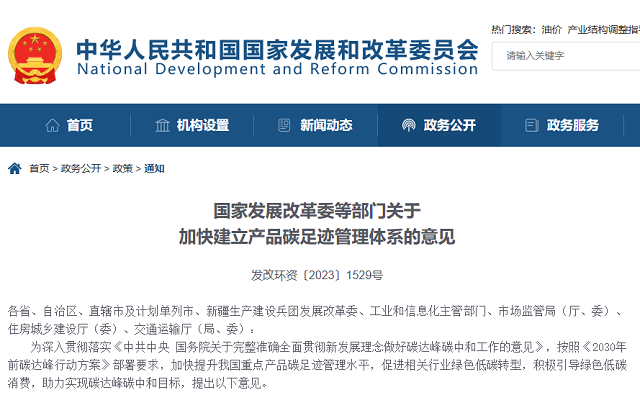 國家發改委加快建設產品碳足跡