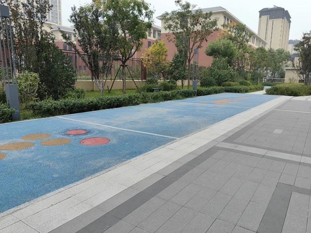 區水務局水處理管理科工作人員徐秉新向記者介紹,建邦順頤府社區的透水鋪裝率達到72%,鋪裝范圍包括步道、停車場、休閑廣場等場所。透水鋪裝主要是利用透水混凝土將雨水充分吸收、匯流,保證了地面鋪裝面層的干爽。