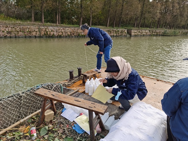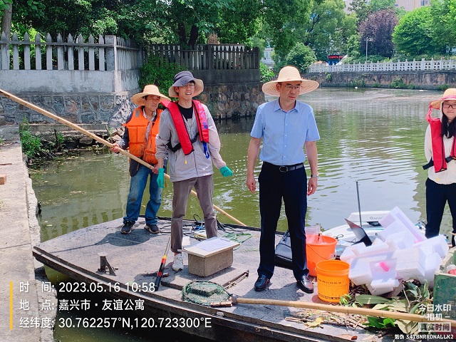 圖為嘉興生態環境局的局長施曉松正在調研水環境質量