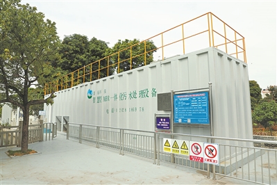 作為水鄉(xiāng)的深涌村,與水有著深厚的淵源?,F(xiàn)在,走進(jìn)深涌村,村頭廣場(chǎng)是一棵枝繁葉茂的大榕樹(shù),民居整齊排列,水質(zhì)清澈的風(fēng)水塘旁邊有一個(gè)集裝箱大小的房子——MBBR一體化污水處理設(shè)備。廣州市水務(wù)局下屬的污水治理工程管理辦公室有關(guān)負(fù)責(zé)人介紹:“深涌村原來(lái)的污水處理設(shè)施是一個(gè)簡(jiǎn)單的厭氧池,2014年已經(jīng)建成,后來(lái)發(fā)現(xiàn)這樣處理的污水不能穩(wěn)定達(dá)標(biāo)。加上該村處于東江流域,水質(zhì)要求較高,就進(jìn)行了提標(biāo)改造。一體化處理設(shè)施去年11月底完工,今年2月通過(guò)了竣工驗(yàn)收,出水能達(dá)到廣東省《農(nóng)村生活污水處理排放標(biāo)準(zhǔn)》的一級(jí)標(biāo)準(zhǔn)。”