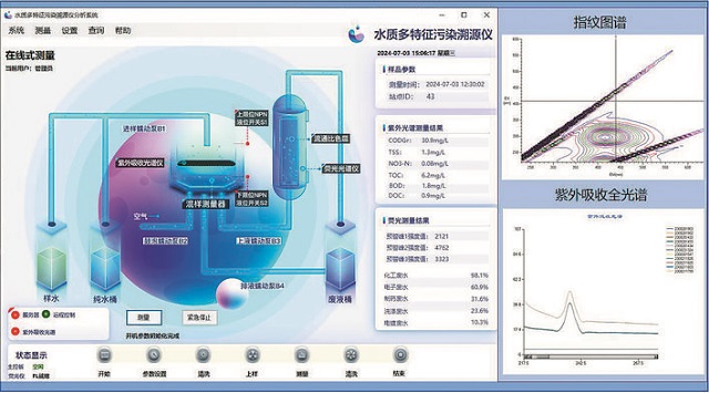 在現(xiàn)場(chǎng)記者看到,設(shè)備屏幕上出現(xiàn)一個(gè)水質(zhì)多源光譜信息和相應(yīng)的溯源比對(duì)結(jié)果,從外觀上看,與人的指紋有幾分相似。曹毅進(jìn)一步解釋道,“鑒于不同廢水樣本中化學(xué)成分的千差萬(wàn)別,每一種廢水都攜帶著其特有的熒光光譜與紫外光譜‘指紋’。我們正是通過(guò)捕捉這些水樣中的熒光、紫外等特征光譜信息,如同解鎖密碼一樣,助力我們迅速鎖定污染源頭。這一技術(shù)不僅是實(shí)現(xiàn)‘源頭治污、精準(zhǔn)治污、科學(xué)治污、依法治污’理念的重要基石,更是推動(dòng)環(huán)境保護(hù)邁向智能化、精細(xì)化的關(guān)鍵一步?!?br />