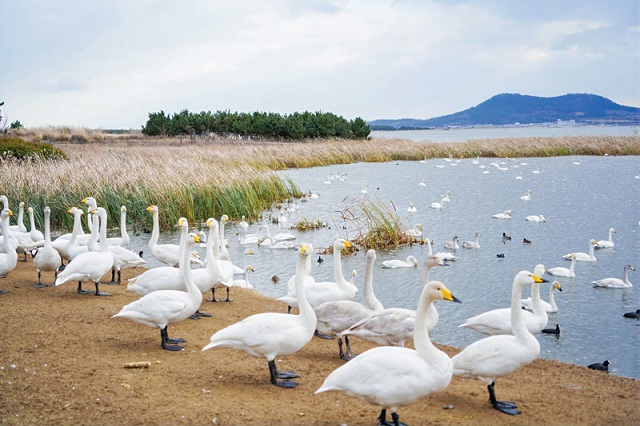 然而,每年的秋冬時節(jié),成群結(jié)隊的天鵝卻選擇在這片看似缺水的土地上棲息繁衍,榮成櫻花湖因此被譽為“城市中的天鵝湖”,吸引了大量游客前來觀賞。