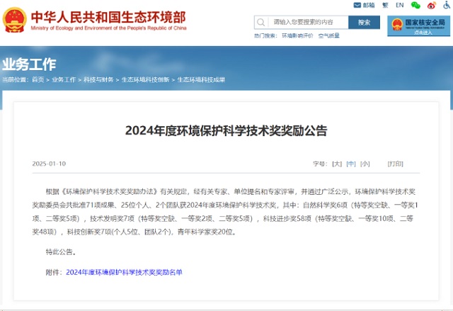 該獎項是由生態環境部主管的國家環保領域最高獎項,旨在獎勵在環境保護科學技術活動中做出突出貢獻的單位和個人,調動廣大環保科學技術工作者的積極性和創造性,促進環保科技事業發展,其科學性、公正性和權威性得到社會各界的廣泛重視和支持。