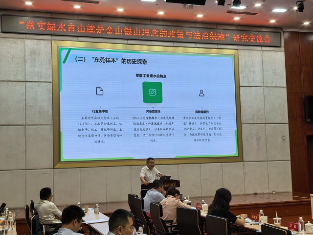今年是綠水青山就是金山銀山理念提出20周年。近日,由西南政法大學(xué)、生態(tài)環(huán)境部環(huán)境與經(jīng)濟(jì)政策研究中心主辦的“落實(shí)綠水青山就是金山銀山理念的政策與法治保障”研究交流會(huì)在重慶市舉行。會(huì)上,廣東省東莞市生態(tài)環(huán)境局黨組成員、副局長(zhǎng)王鑫以《小切口、小快靈:東莞市零散工業(yè)廢水管理的立法創(chuàng)新》為題作主題發(fā)言,向與會(huì)專家學(xué)者分享東莞市零散工業(yè)廢水管理的法治經(jīng)驗(yàn)。