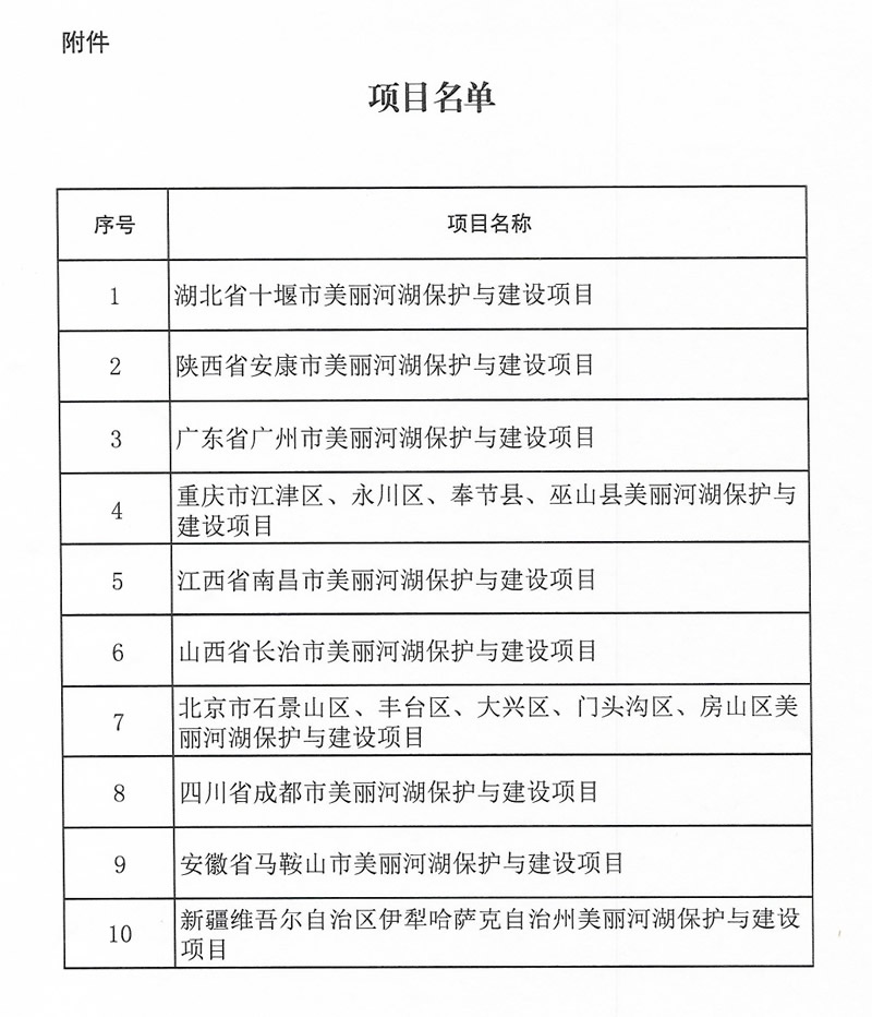 獲得中央財(cái)政支持的10個(gè)美麗河湖保護(hù)與建設(shè)項(xiàng)目分別為:
