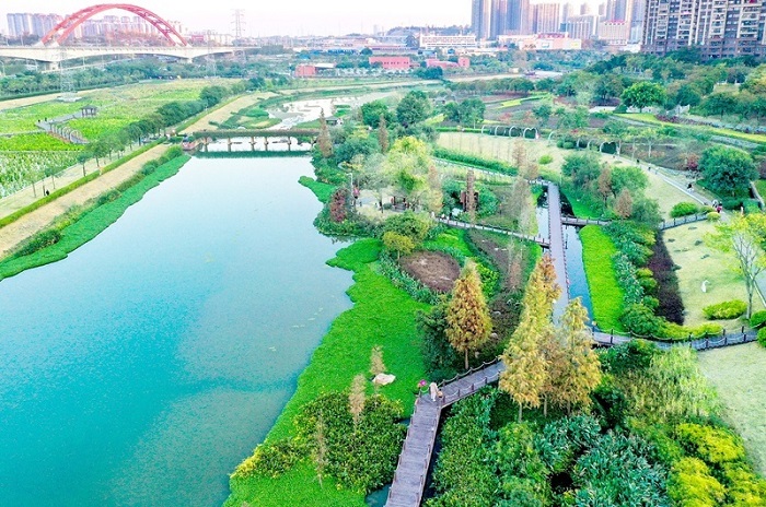 為持續改善那考河流域生態環境,南寧市在河邊打造海綿城市濕地公園,修建層層疊疊的凈水梯田,截流過濾凈化雨水。兩岸種植喬木灌木100多種,種植水生植物19種,用以凈化水質。據不完全統計,自2017年以來,那考河新增動植物38種,那考河生物多樣性顯著提升,就連對水質要求特別挑剔的原生植物澤瀉,也在河道兩岸重現生機。