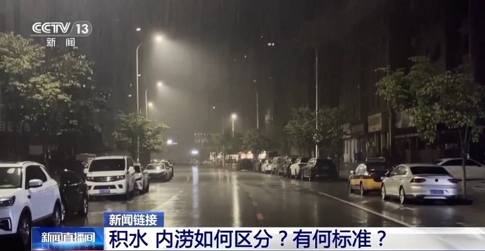 中國城市規劃設計研究院副總工程師王家卓:積水、內澇,實際上是不同的概念,積水一般指的是本地的降雨超出了管網的排放能力,地表上有一些水的積存,那就可以稱為積水,這個積水可以淺、可以深。