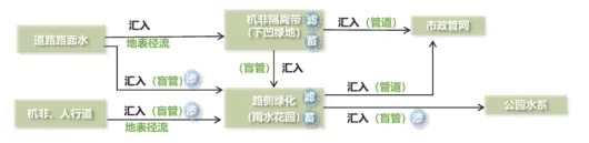 道路排水系統(tǒng)作為人工紐帶,是“四網(wǎng)協(xié)同”理念落地的重要載體。隨著海綿道路、行泄通道等設(shè)計理念的提出,道路排水系統(tǒng)突破了傳統(tǒng)排水通道的單一導排功能,成為集雨洪傳輸、徑流凈化、生態(tài)連通、資源利用于一體的復合性功能載體。一方面,其承接路網(wǎng)地表徑流,實現(xiàn)雨水從道路到管網(wǎng)、水網(wǎng)的有序?qū)牛行Ь徑夤芫W(wǎng)排水負荷,降低城市內(nèi)澇風險;另一方面,道路排水系統(tǒng)與林網(wǎng)深度融合,在雨水徑流傳輸過程中同步完成污染削減,實現(xiàn)雨水自然凈化;此外,當管網(wǎng)轉(zhuǎn)輸能力不足時,道路排水系統(tǒng)作為行泄通道可承接管網(wǎng)溢流雨水,為多余雨水提供應(yīng)急出路,同時結(jié)合調(diào)蓄設(shè)施實現(xiàn)雨水臨時儲存,為雨水資源回收利用創(chuàng)造條件。因此,通過優(yōu)化道路排水系統(tǒng)設(shè)計,實現(xiàn)路網(wǎng)、管網(wǎng)、水網(wǎng)、林網(wǎng)的有效銜接,可解決城市生態(tài)空間的連通性斷裂問題。