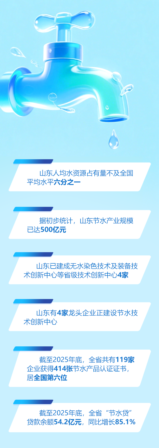 省級層面,山東先后出臺節水產業發展規劃和實施意見,從投資補助、技術推廣、稅費減免等方面給予支持。金融活水也在精準滴灌,截至2025年底,全省“節水貸”貸款余額54.2億元,同比增長85.1%。